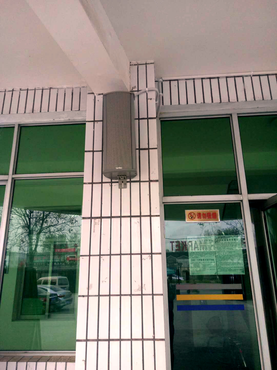 3、系統(tǒng)要求采用定壓傳輸方式。室外區(qū)域要求安裝高級室外防雨型音柱。
