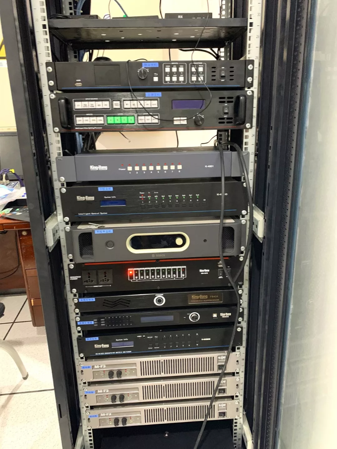京邦電子(KING-BANG)應項目需求快速組建了專項技術方案團隊,經過不斷的反復研究。為該項目量身打造一套高智能會議系統并成功應用南京信息工程大學濱江學院報告廳